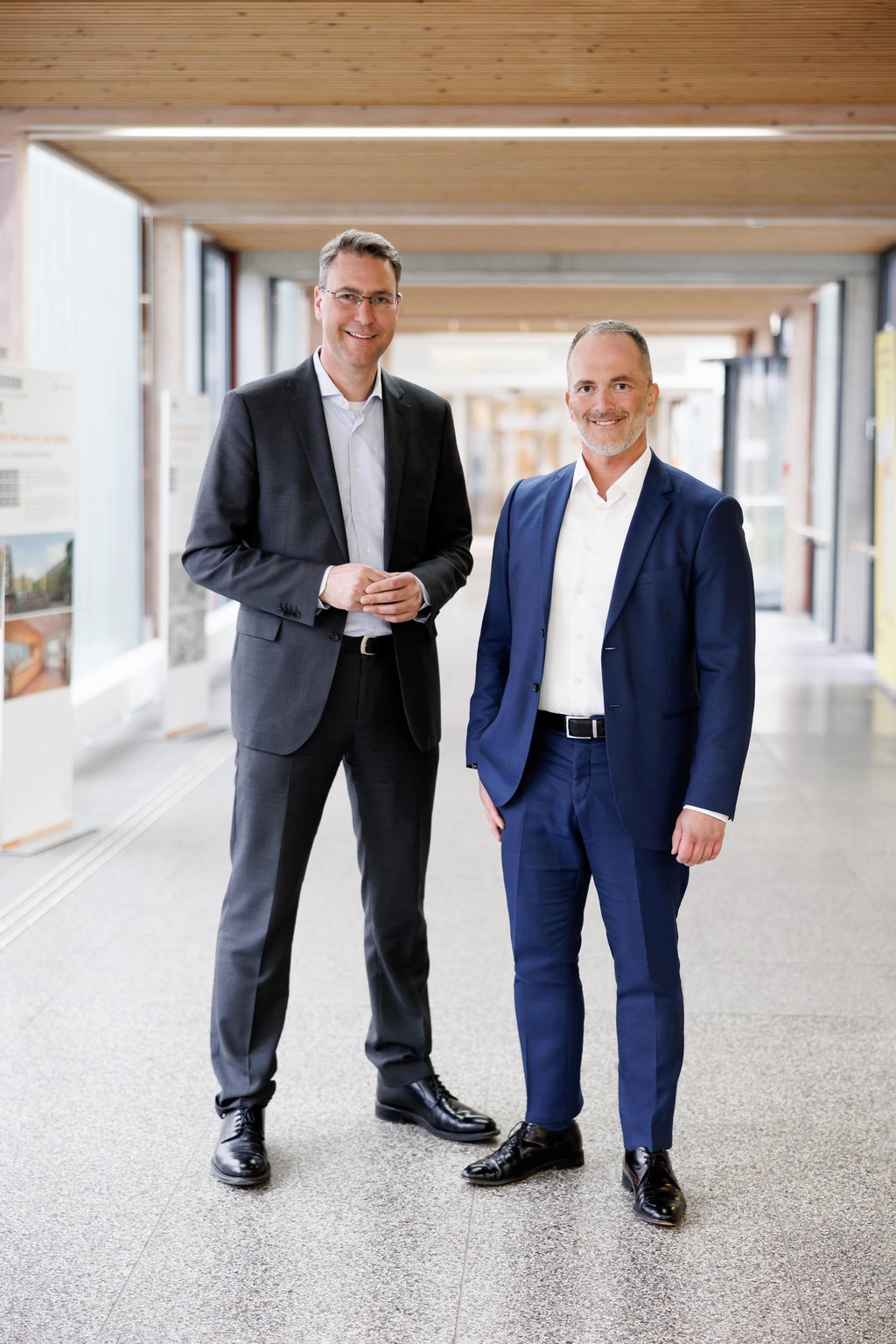 Große Freude über die Förderzusagen: Landrat Dr. Richard Sigel, Aufsichtsratsvorsitzender der Rems-Murr-Kliniken (links) und André Mertel, Geschäftsführer der Rems-Murr-Kliniken, in der Rems-Murr-Klinik Schorndorf. © RMK