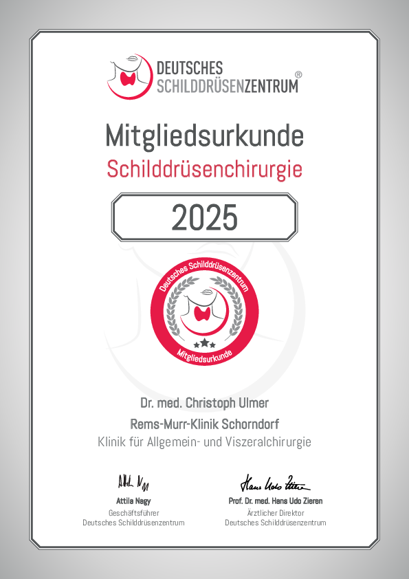 Unsere Leistung konnten wir jüngst durch die erfolgreichen Zertifizierungen der minimalinvasiven, der koloproktologischen und der Hernienchirurgie durch die DGAV bestätigen lassen. Ein besonderes Augenmerk richten wir bei all unseren Leistungen auf die Sicherheit. So führen wir beispielsweise Schilddrüsenoperationen ausschließlich unter Anwendung des von uns mitentwickelten Neuromonitorings zur Überwachung des Stimmbandnervens durch.